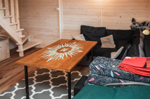 Ponadto na zdjęciach pojawiają się kadry z kompleksu, jaki oferujemy naszym gościom. Klimatyczne drewniane domki z kompleksowym wyposażeniem. Sfotografowane zostało każde pomieszczenie w domkach, przez co łatwiej jest sobie rozplanować miejsca noclegowe wśród członków rodziny, czy też znajomych. Na zdjęciach przedstawiamy także najbliższe otoczenie z pięknym widokiem na staw, a także wszelkie atrakcje. Dzięki temu istnieje możliwość zobaczenia, jak nasze “Ranczo Rykowisko” się prezentuje, a także, na jakie udogodnienia można liczyć.
